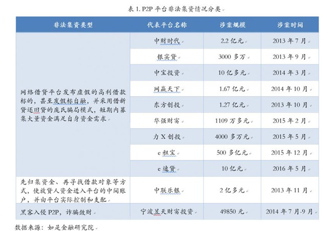 经过总结,我们发现P2P平台主要通过三种方式来进行非法集资:一是网络借贷平台发布虚假的高利借款标的,甚至发假标自融,并采用借新贷还旧债的庞氏骗局模式,短期内募集大量资金满足自身资金需求;二是网络借贷平台通过先归集资金、再寻找借款对象的方式,使放贷人资金进入平台的中间账户,并由平台实际控制和支配;三是黑客入侵P2P平台,利用网站漏洞诈骗敛财。其中,第一种方式最为常见,涉案规模巨大的e租宝、中宝投资等案件均在此列。